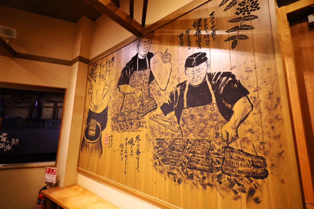 大阪府和泉市の鰻の成瀬 和泉店さんの内外装デザインと、店内2箇所の壁に直接絵を描かせていただきました。