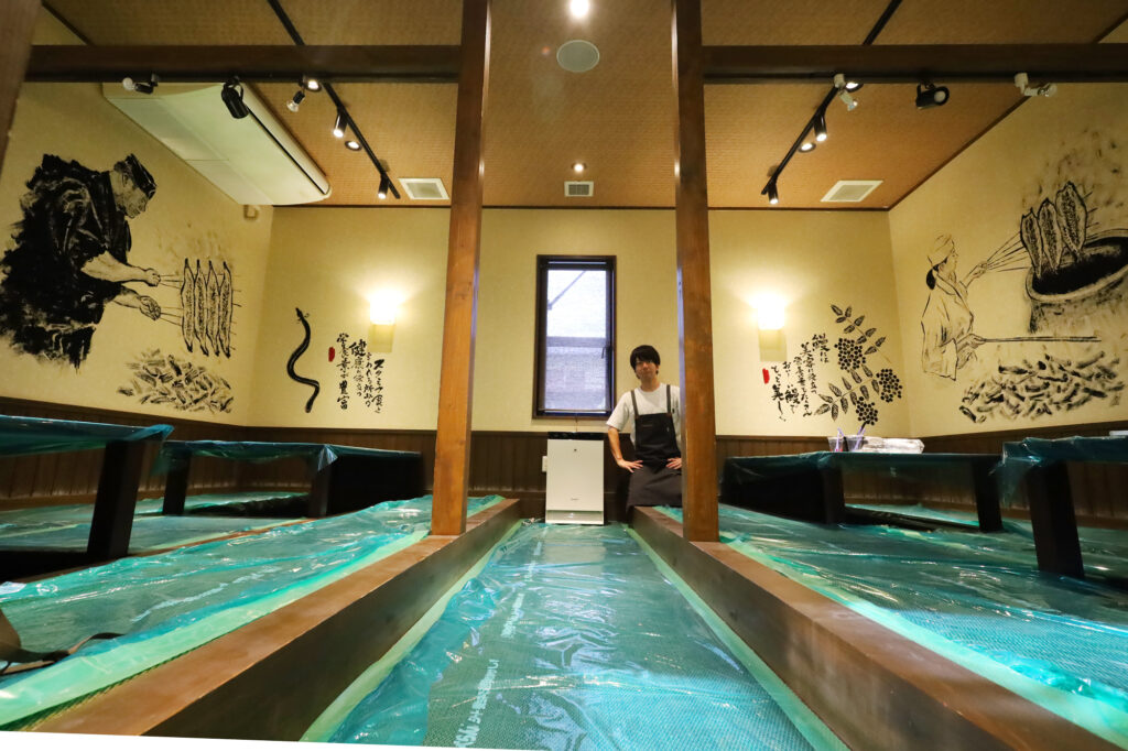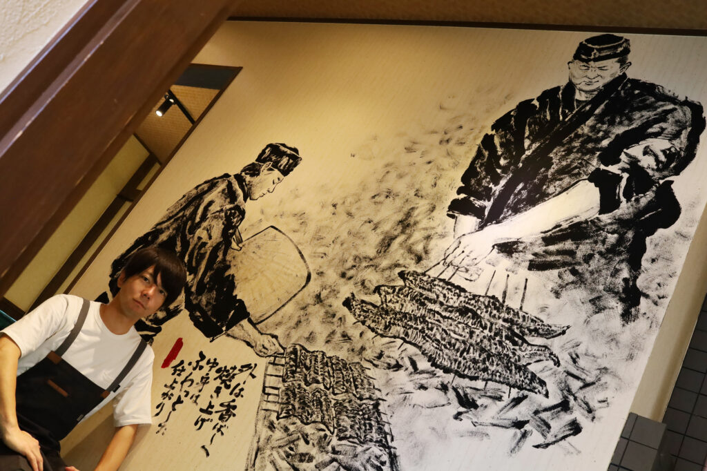 兵庫県たつの市の鰻の成瀬 たつの市店さんの内外装デザインと、店内3箇所の壁に直接絵を描かせていただきました。