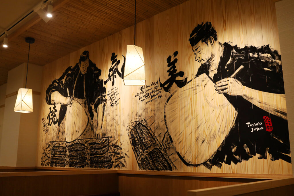 鰻の成瀬奈良三条店さんの店内壁面2箇所に絵を描かせていただきました。制作期間は2日間。