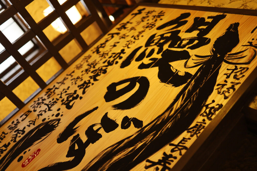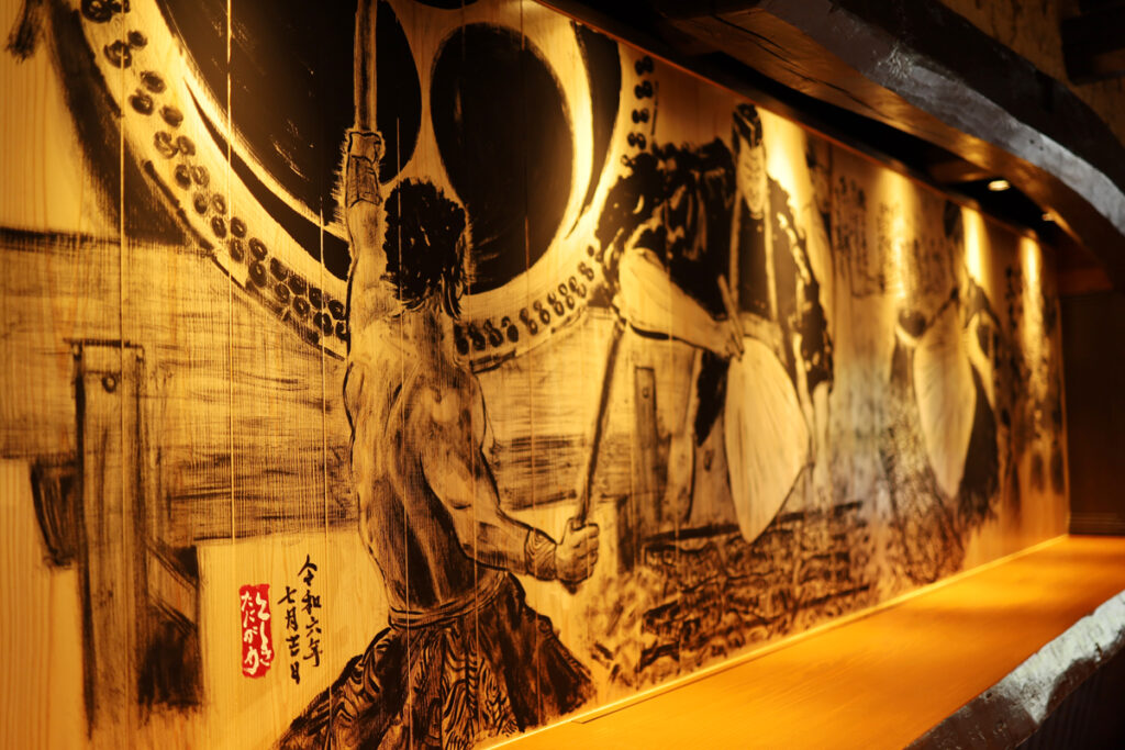 とてもとても趣のある店内で、尚且つ最高の照明を付けていただいたカウンターの壁に絵を描かせていただきました。